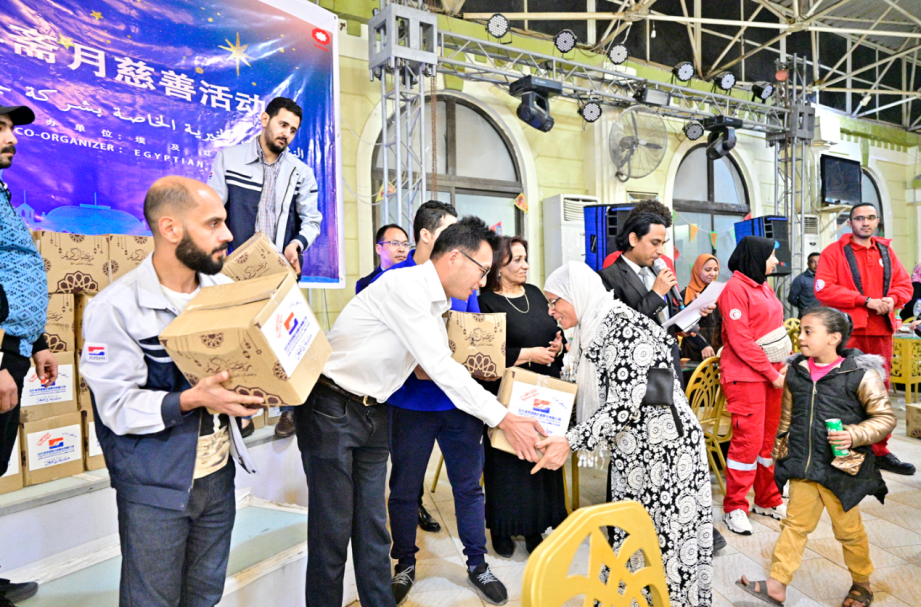斋饭过后,吴平带领爱心志愿者为贫困家庭发放了总价值20万埃镑的斋月礼盒,为当地贫困群体纾困尽绵薄之力。接受捐赠的居民深受感动,争相与志愿者合影,记录下这份温情与喜悦。